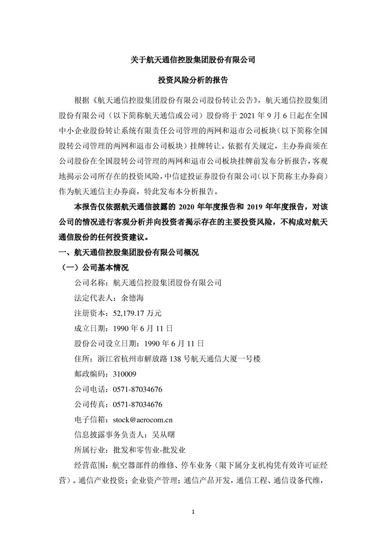 關(guān)于航天通信控股集團(tuán)股份有限公司投資風(fēng)險(xiǎn)分析的報(bào)告